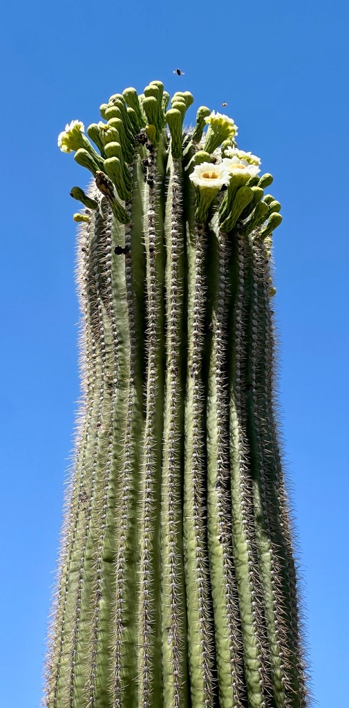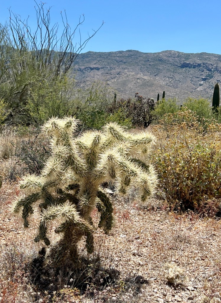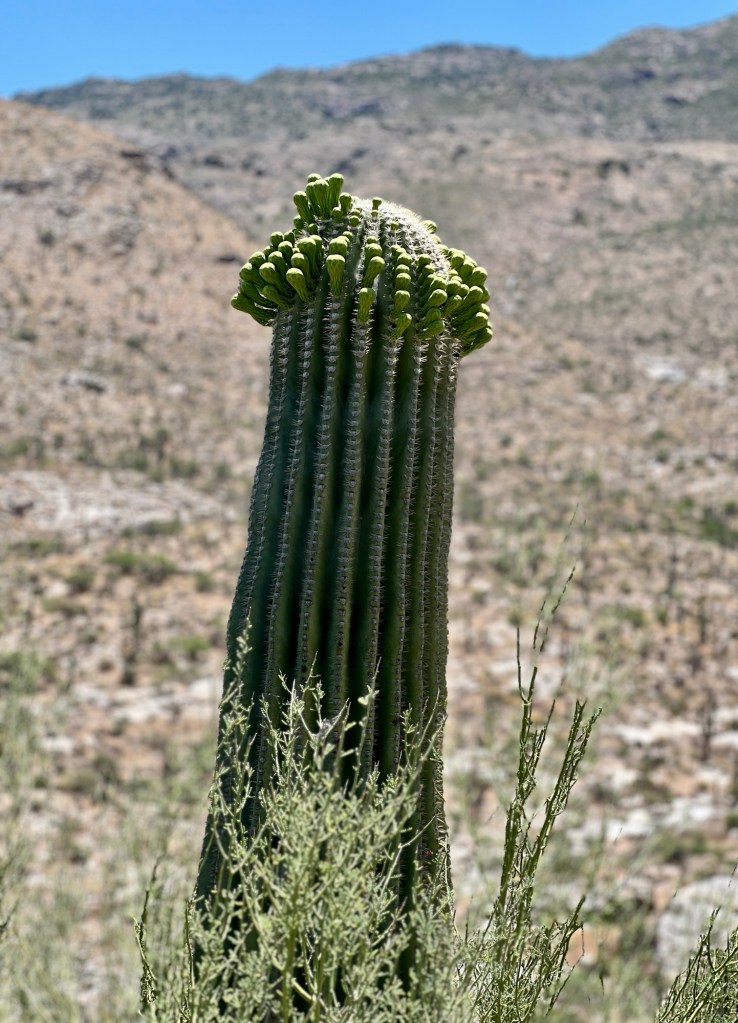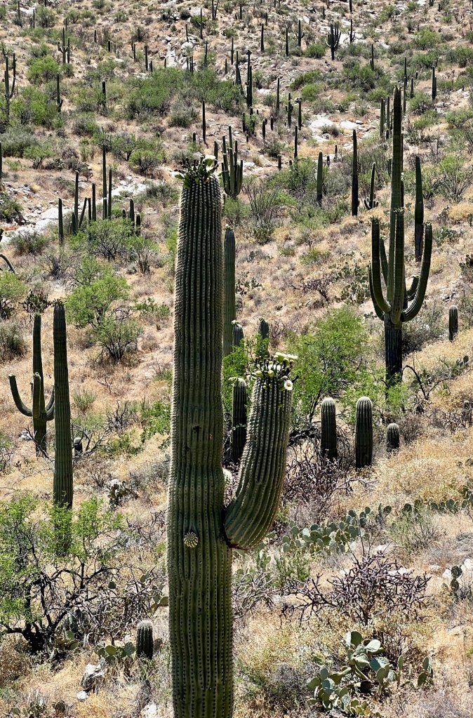 Today we visited one of Tucson’s best attractions, Saguaro National Park. If you’ve never seen these beasts up close, this is the place to do it. Most of them think it’s spring and have flowers blooming on them. Many of the other cactus types have already passed peak flower time, but we got to see yellows, purples, reds, and oranges throughout the plants. There is one very rare and special crested cactus. His arms look like a fan shaped crest instead of being straight and tall. It’s a beautiful plant and amazing to see it up close.