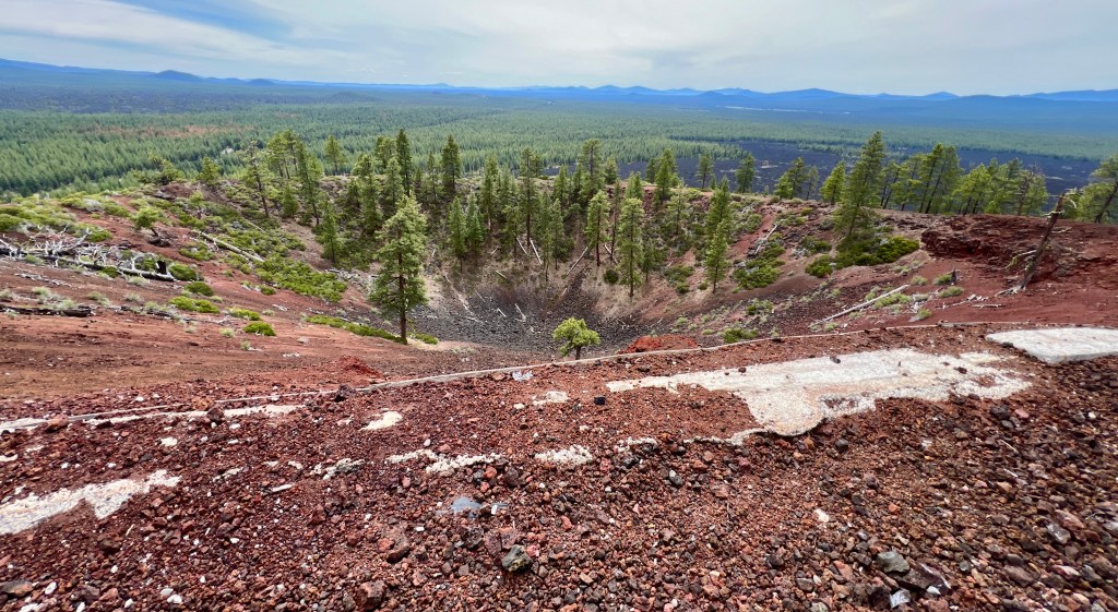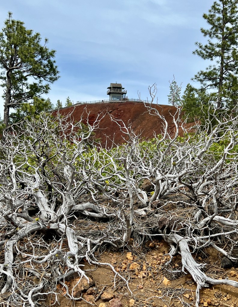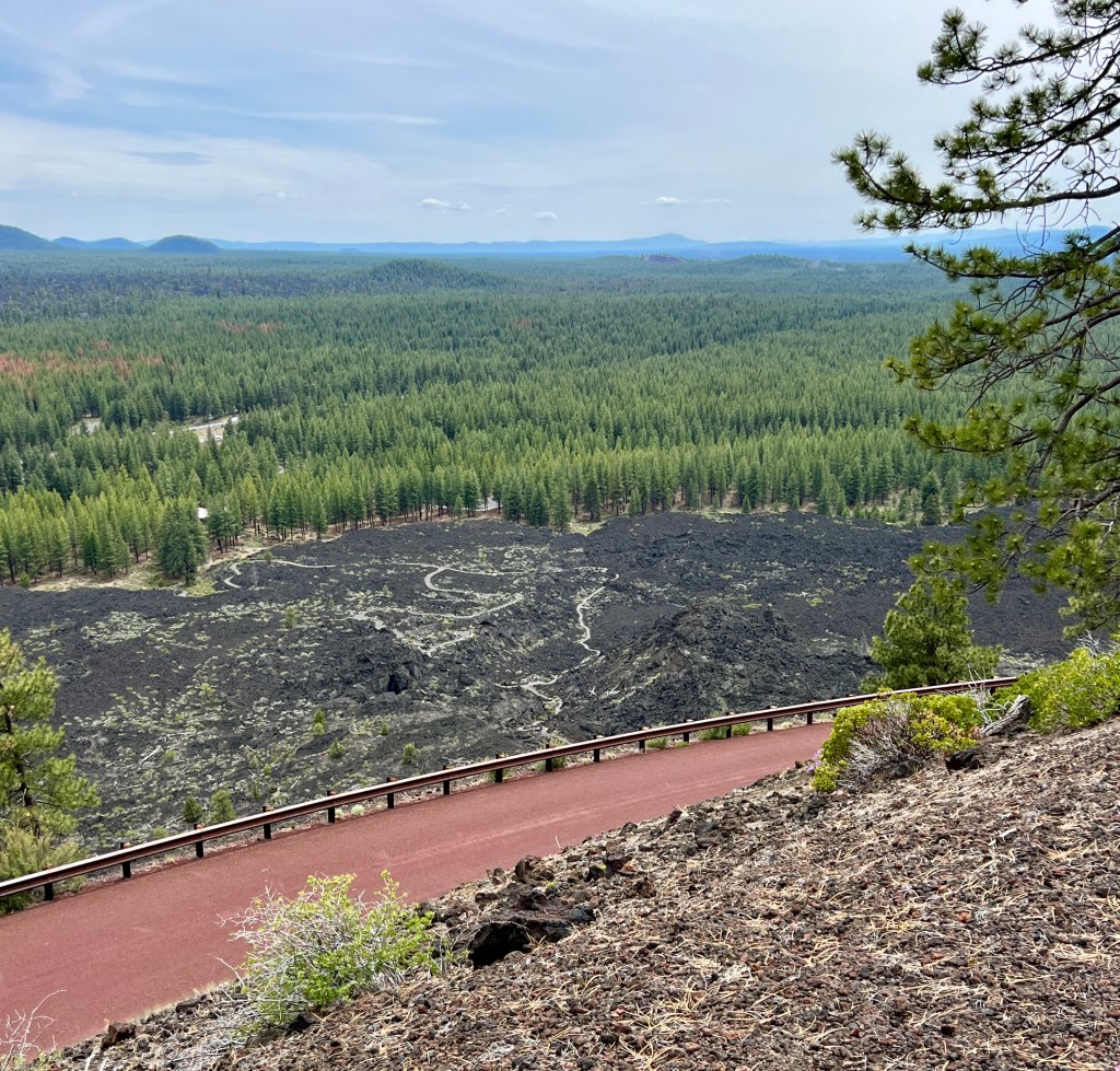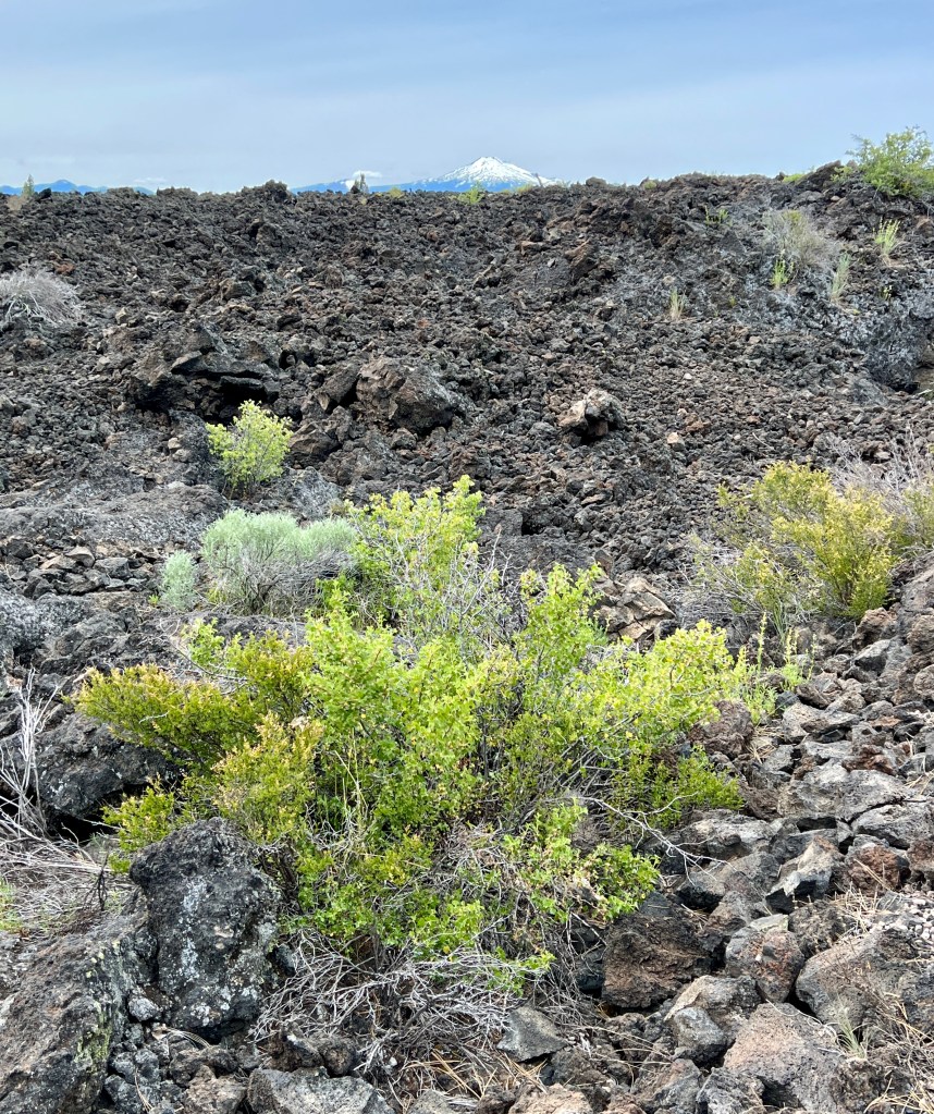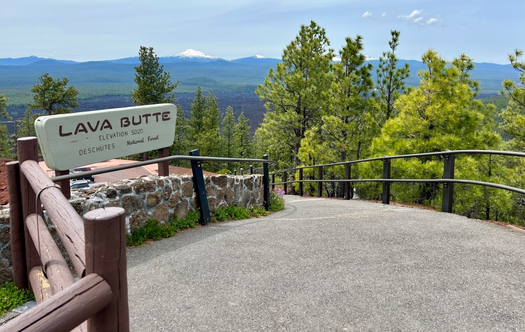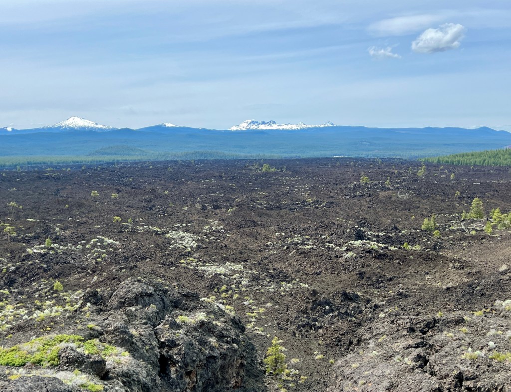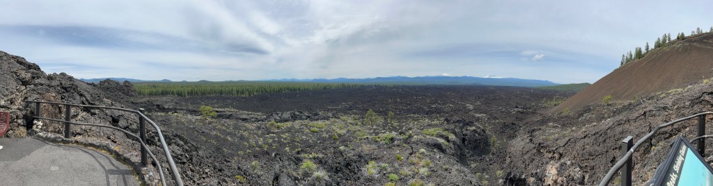 South of Bend, a volcanic caldera erupted thousands of years ago and was made a national park. It is called Lava Land, and as you drive past it, you see piles and piles of lava rocks that look like lava dunes. We went to that park on Friday when we finished working for the day. We used our National Park Pass for admission and were able to drive to the top of the crater. We walked the rim trail, and in addition to scenic views of the crater, we had amazing views of Mt. Bachelor and the Sisters Mountains, which still had snow at the top.