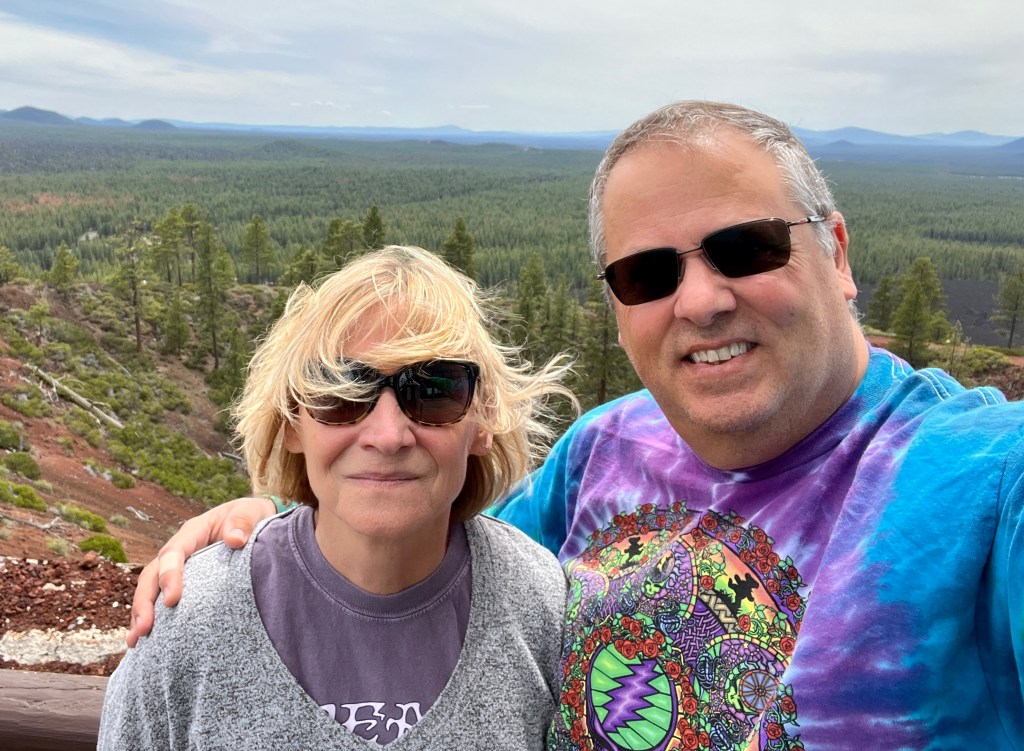 The main reason for the visit was to spend time with the Barab Family. Caryn and Clint have known each other since birth, and we enjoy seeing them as our travels cross and as we get together for events. They split their time between Eugene and Bend, and since Clint had never been to Bend, we made this a “must-stop” destination. We were fortunate as both of their adult children were in town. We also got to spend time with Beckham, their first grandchild. We went to their house after work the first night and played for a bit. We then hit a food truck park for some great eats. Clint and I got sloppy Joe sliders, and we shared a lot of Mac and cheese with Beckham. We’d brought him a tie-dyed shirt (something we often give to little ones), and he had happily put it on before we left the house. A band started playing at the truck park, and Beckham was one to dance. He is a future Dead Head in the making as he feels the music and dances with abandon. At one point, one of the musicians played the trumpet, and his 3.5-year-old hands went to his mouth and mimicked the trumpet-playing motion. It was very clever and sweet. We will enjoy watching him grow up.